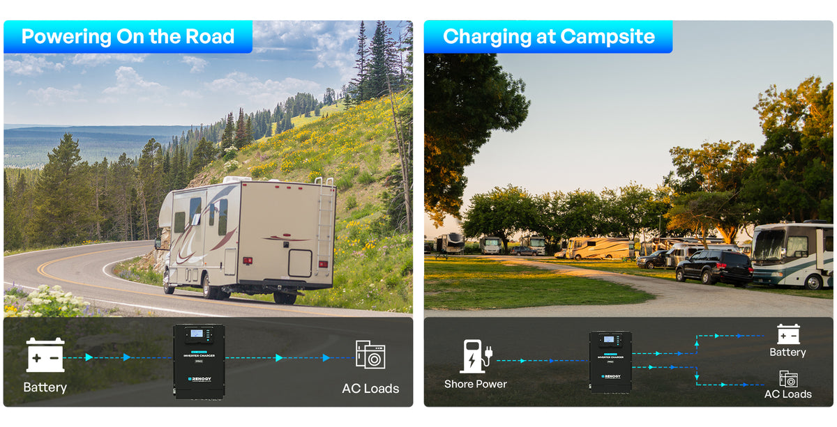 Power your RV on the road and recharge with shore power at camp.